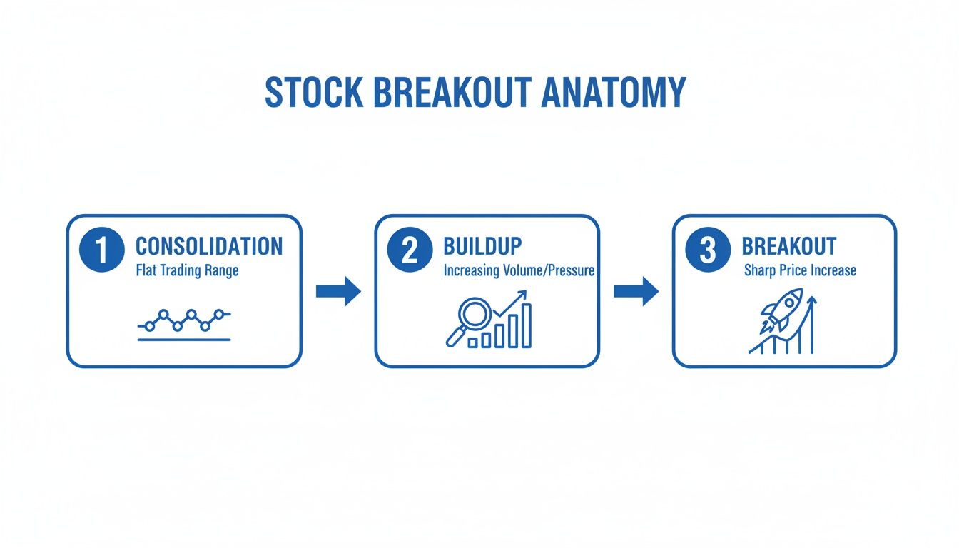 Before you can profit from a breakout, you have to know what one actually looks like on a chart and understand the psychology that drives it. A real breakout isn't just some random price spike; it's the final, explosive stage of a pretty predictable cycle.