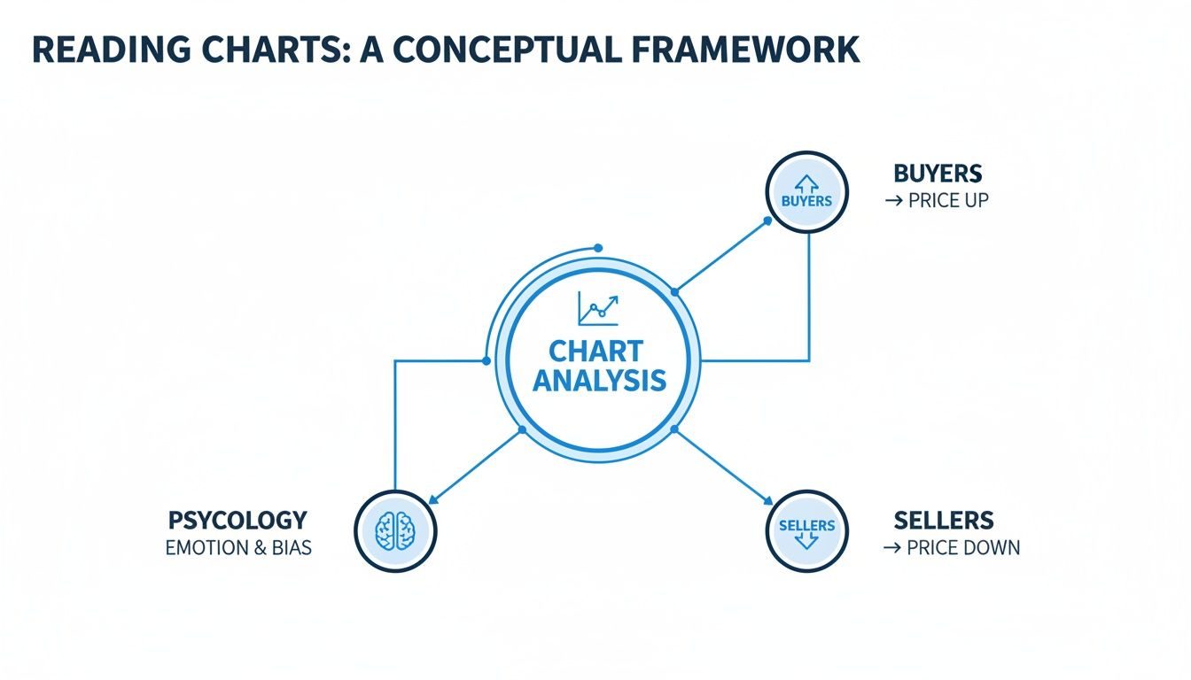 Technical analysis charts are, quite simply, visual maps of an asset's price journey over time. For a trader, they are the single most important tool in the kit. They cut through the noise of raw market data, turning a complex stream of numbers into something we can actually interpret—the ongoing battle between buyers and sellers. Getting good at reading these charts is the foundation of every informed trading decision you'll ever make.