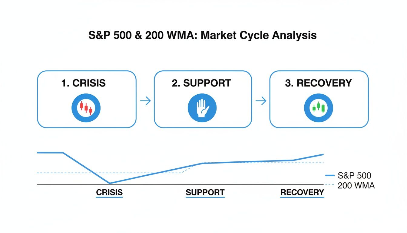 You can clearly see the 200 WMA acting as a critical support level during market stress, often marking the turning point from crisis back to recovery.
