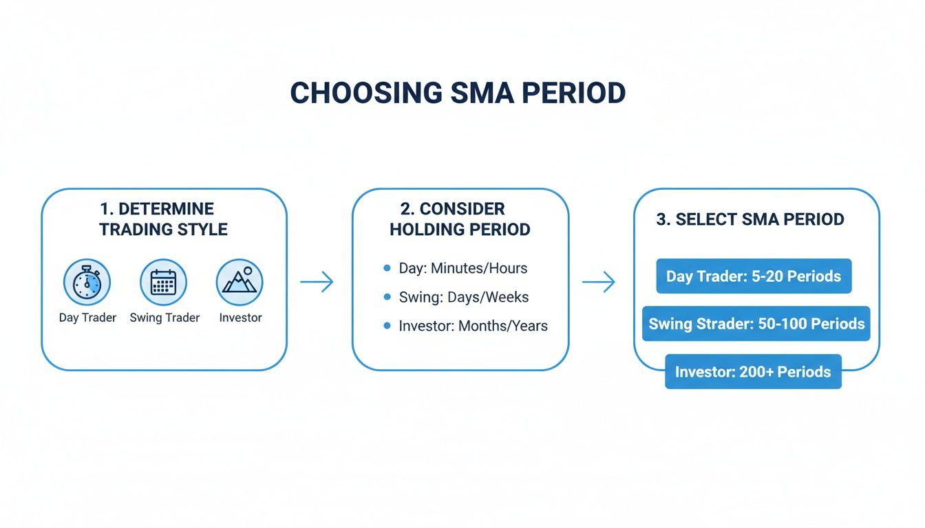 In trading, there's no magic number for the "best" SMA period. The perfect setting is entirely dependent on your personal trading style and goals. What works wonders for a long-term investor analyzing a decade-long trend will be totally useless for a day trader who needs to react in seconds.