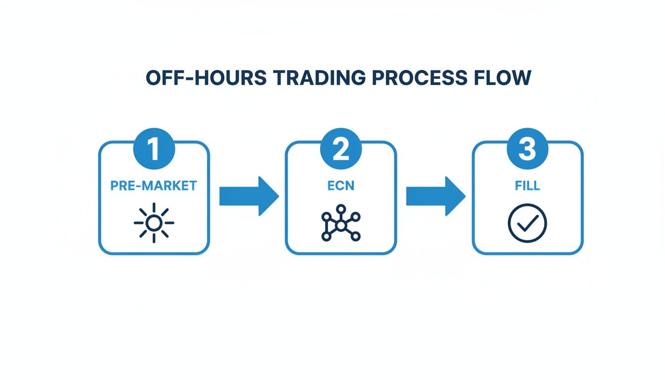 Picture this: It’s 8:15 AM ET and you enter a limit order on your brokerage platform. A special flag marks it for the pre-market, so your broker sends it to an ECN handling early trades. That ECN broadcasts your bid, then a matching ask pops up from another trader. Once matched, the ECN confirms the fill back to your broker—and you see the execution update on your dashboard.